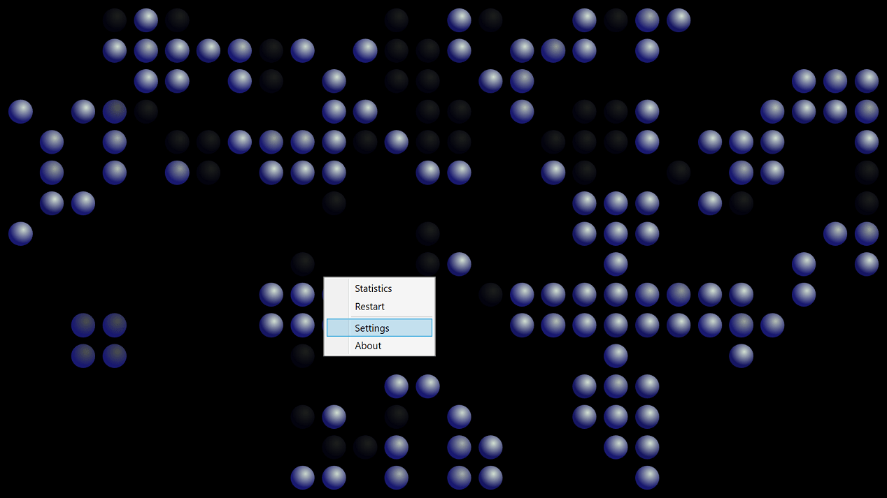 - context menu allows to change settings and to show/hide statistics without interrupting screen saver;